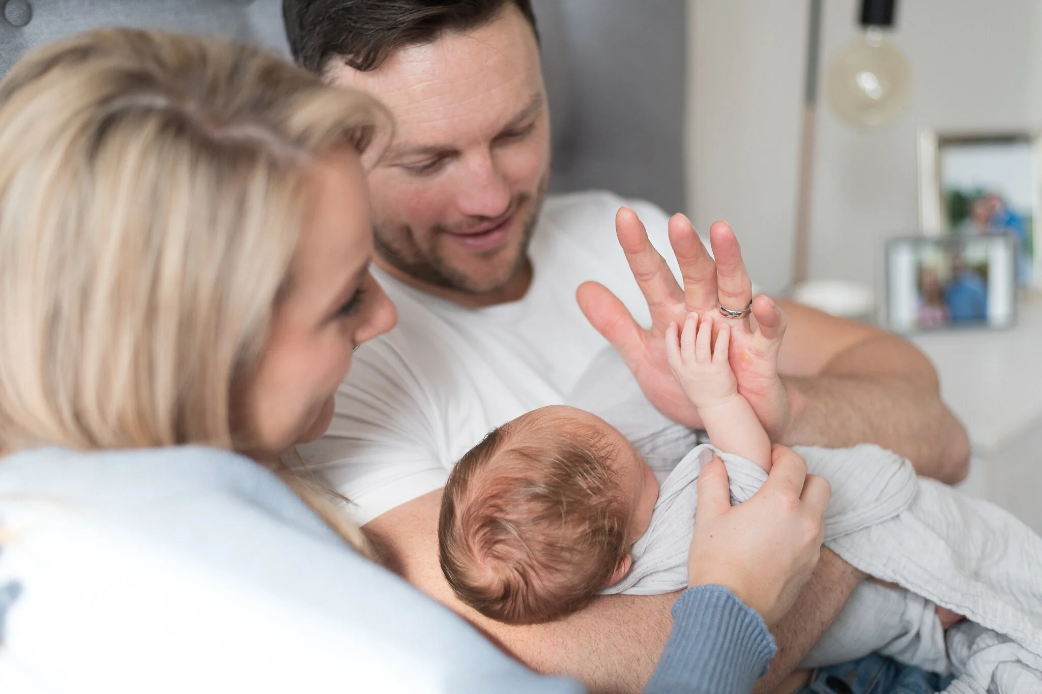Newborn shoots are often best done at home, as it creates a comfortable and familiar environment for both baby and new parents. These sessions focus on a natural, documentary style, allowing us to capture the tender everyday moments that make early family life so special.
